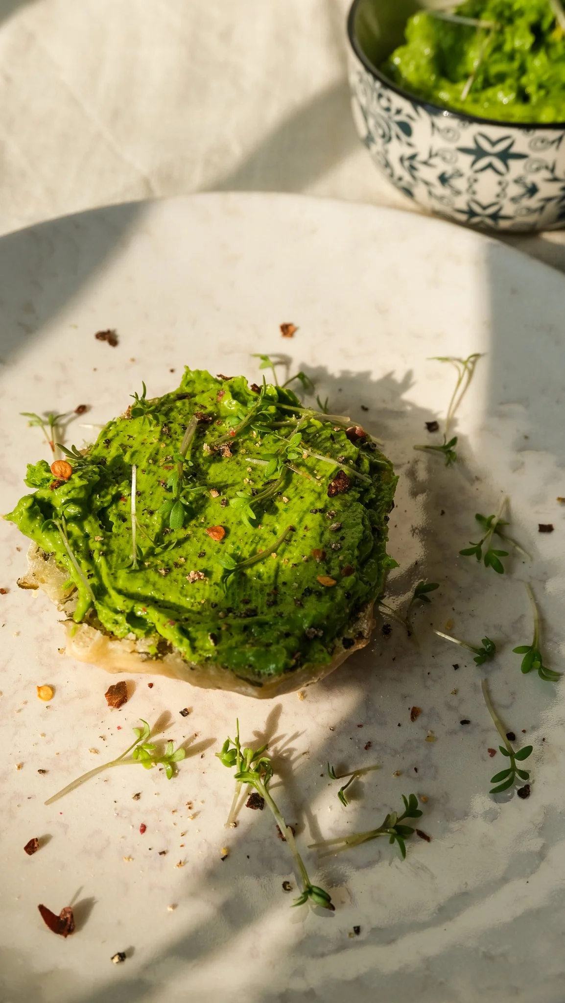 Direkt auf ein Brot streichen und mit Pfeffer und Chili nach Geschmack garnieren oder optional in Form bringen (z. B. als Rolle in Backpapier) und im Kühlschrank fest werden lassen