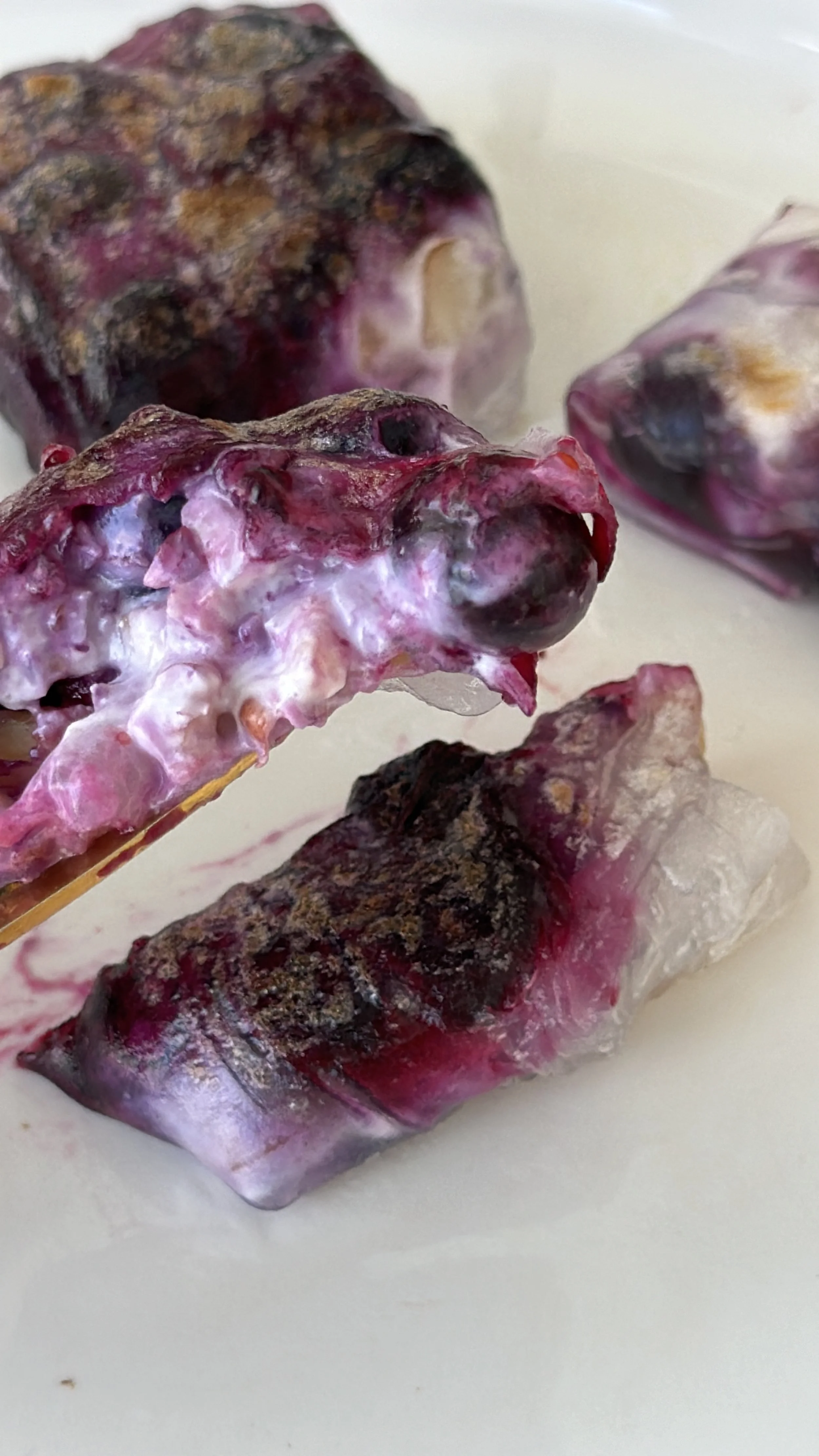 To make them, you only need four basic ingredients: rice paper, blueberries, (plant-based) Greek yogurt, and your favorite nuts. Simply soak and fold the rice paper with the filling inside, crisp it up in a pan or air fryer, and enjoy that delicious crunch! You can even dust them with a touch of cinnamon or coconut sugar for extra flavor.