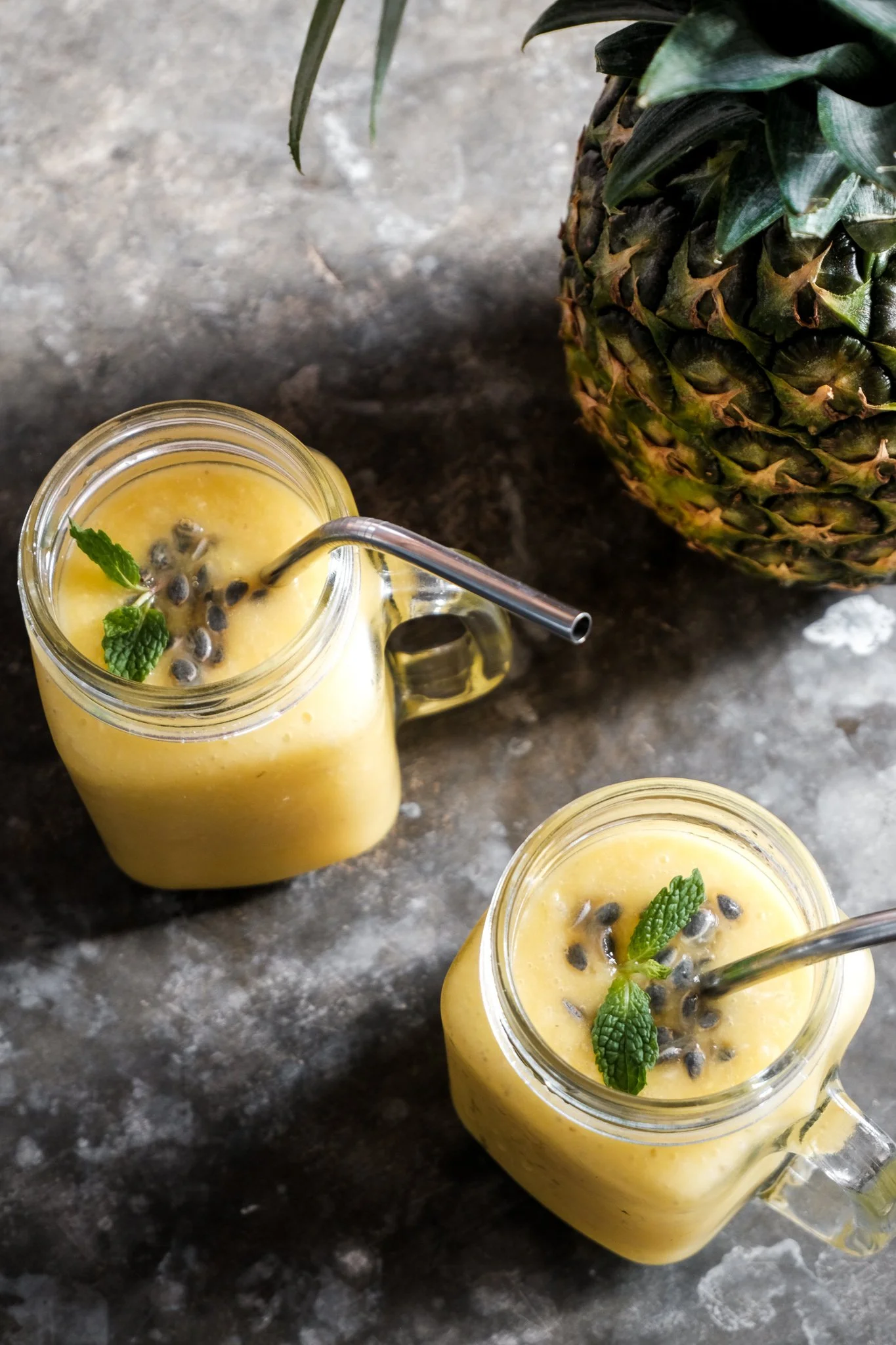 TROPICAL VEGAN PINEAPPLE MANGO BANANA SMOOTHIE
