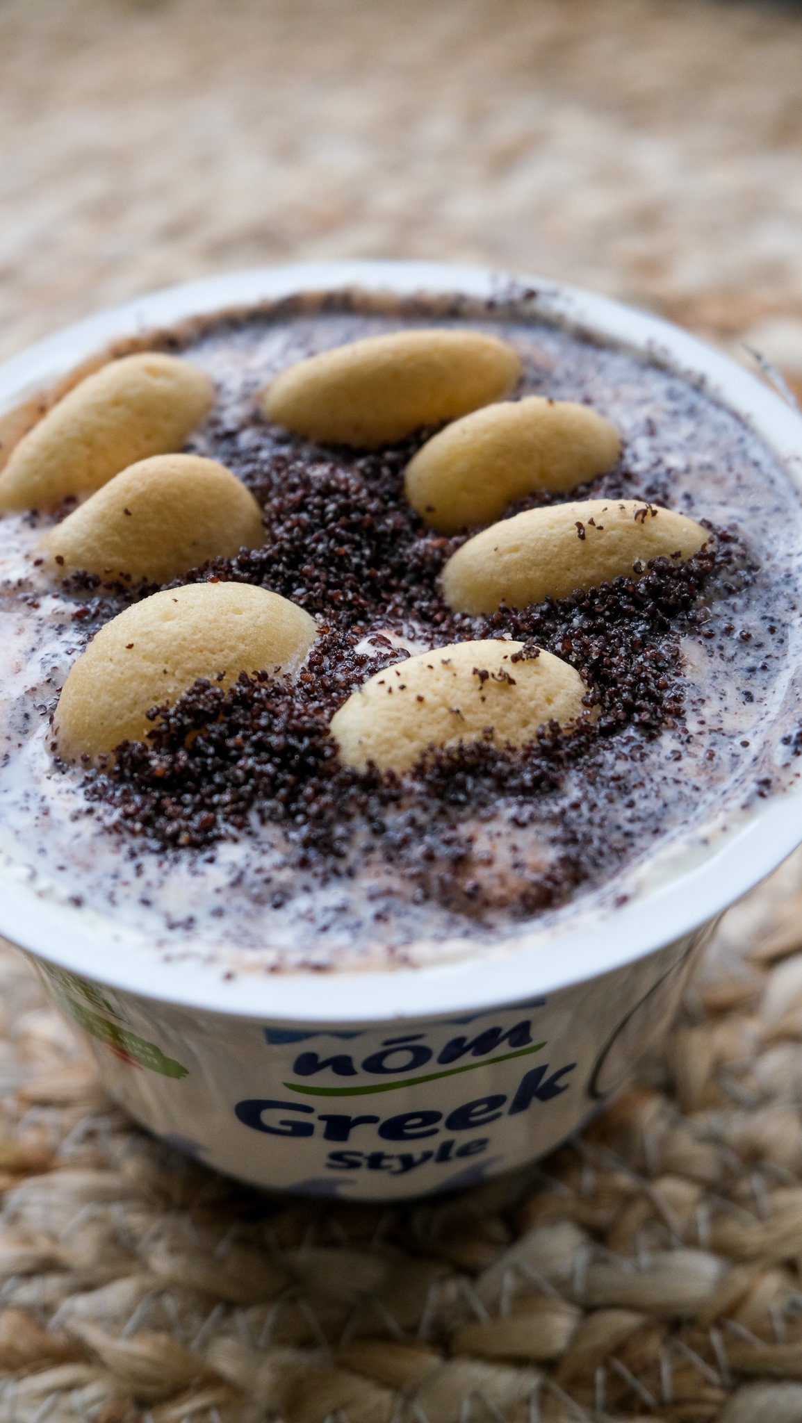 Mix the yoghurt with the stewed plums and ground poppy seeds until creamy.
