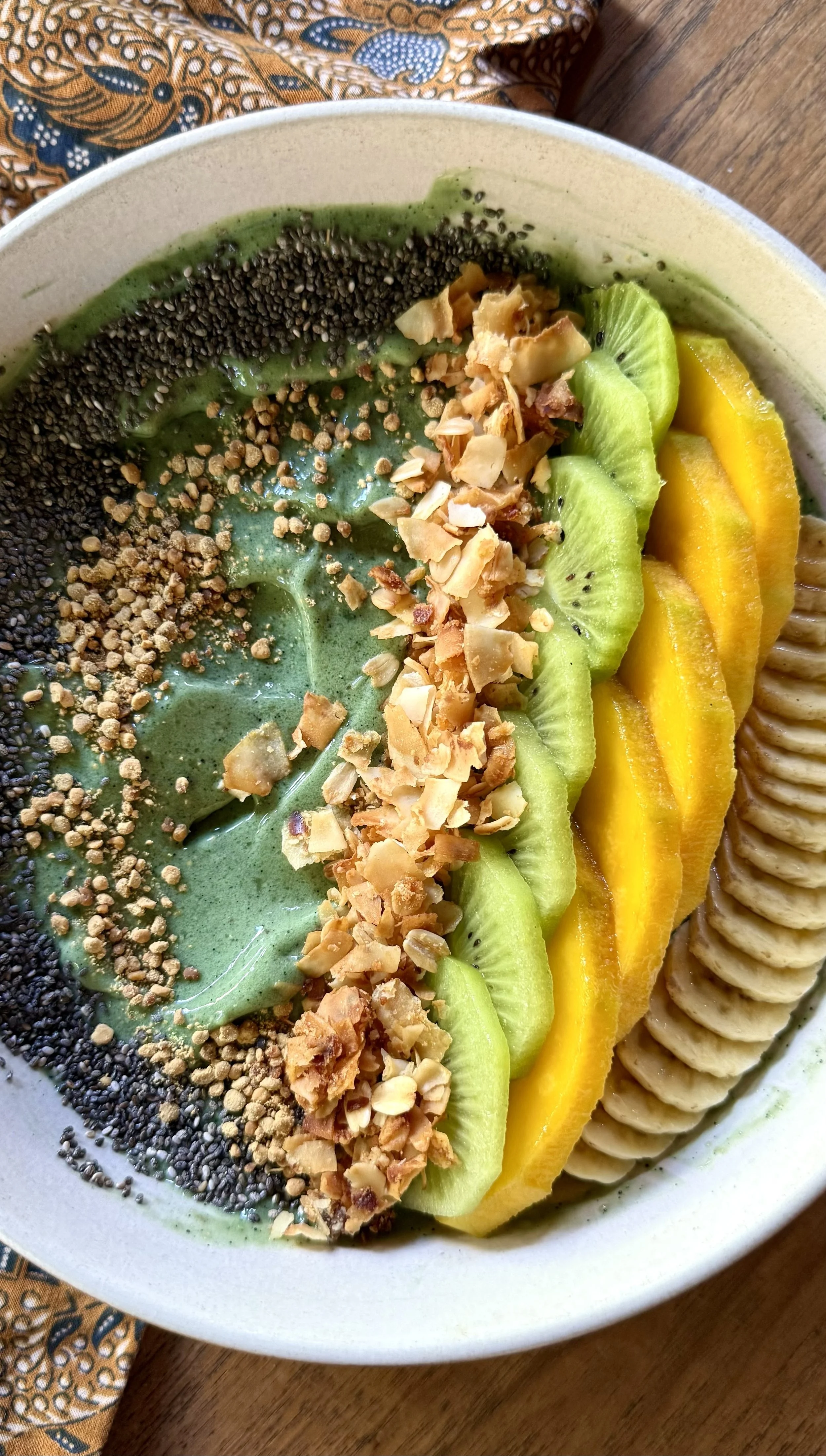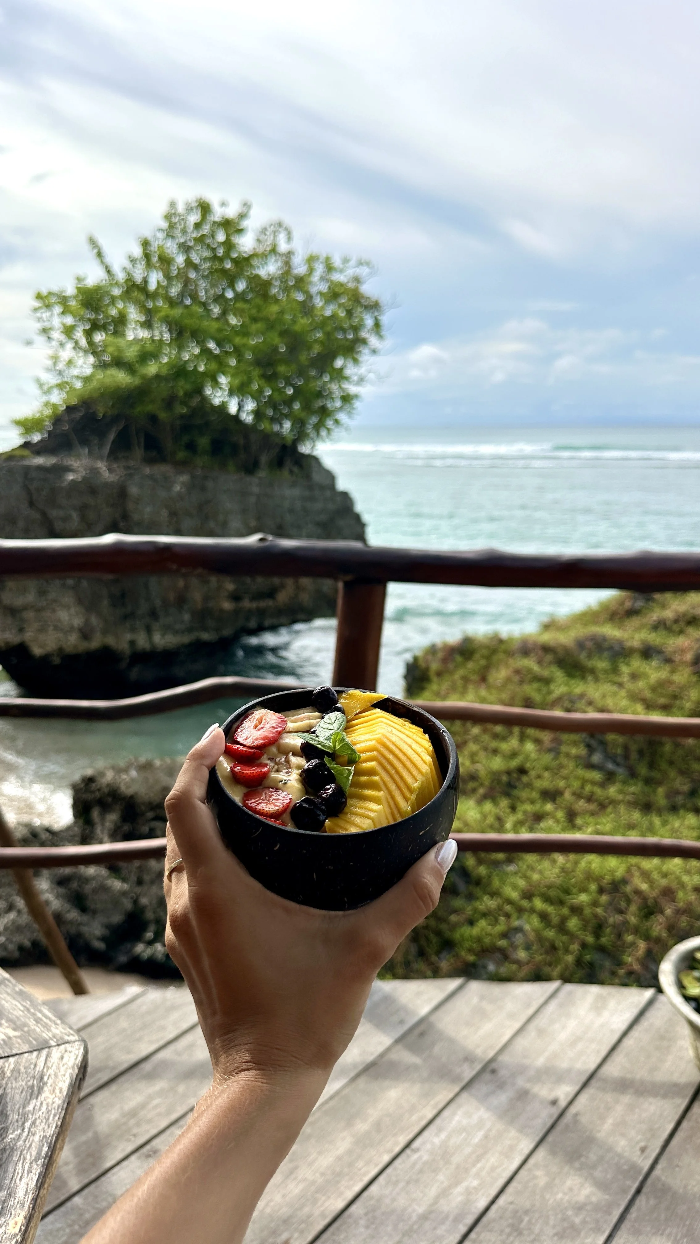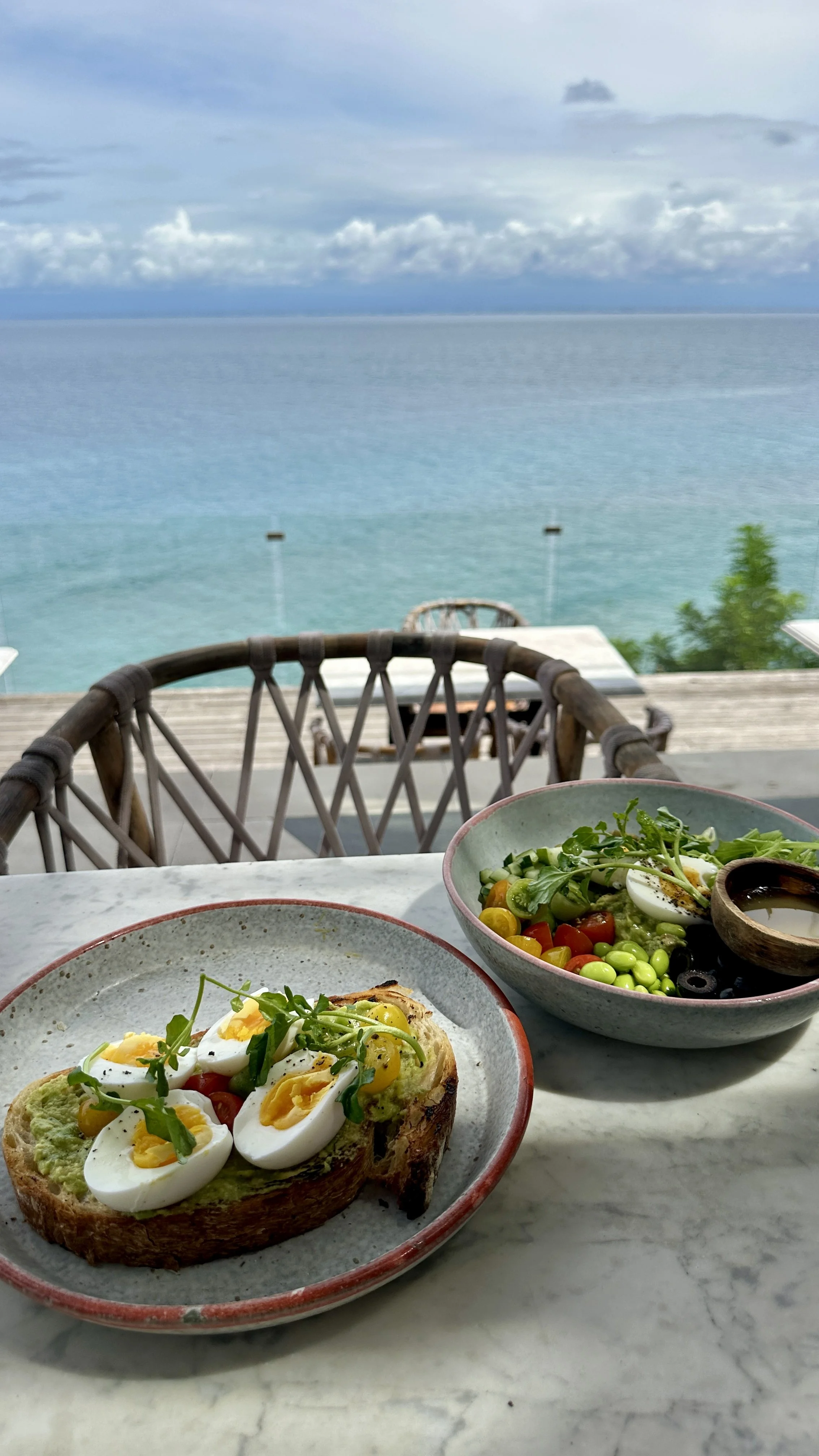 One of the most popular spots for breakfast and lunch is for sure Suka espresso. This is due to their strategic location in the heart of Uluwatu but also because of their great brunch and coffee options. I’ve been several times and really liked their smoothie bowls, shakshuka, salads for lunch and their avocado bread. If you come to a popular time you might have to wait for a table.
