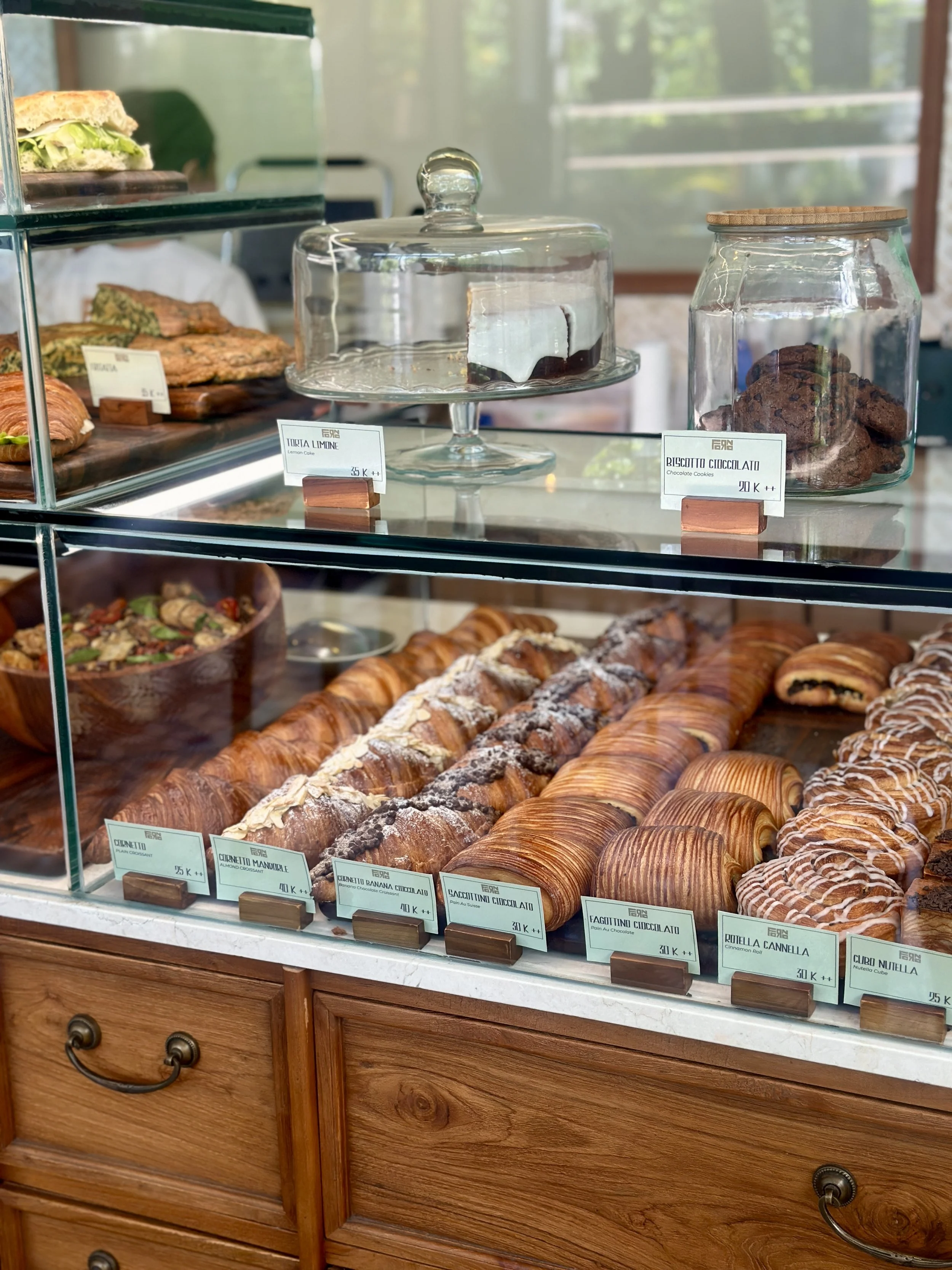 I have been wanting to try this amazing bakery in the heart of Uluwatu since a long time and finally made it! You can not only choose from their delicious pastries and bread but also can enjoy a tasty breakfast or lunch inside the lovely cafe. The menu includes authentic Italian favorites such as focaccia, salads such as with tuna (which we loved!!), chicken or mango, different panino with meat or vegetarian, omelette and other egg dishes (with bolognese was amazing!), pancakes (soooo goood!) as well as pasta. They also have a brunch and coffee / pastry promo which you can check on their IG!