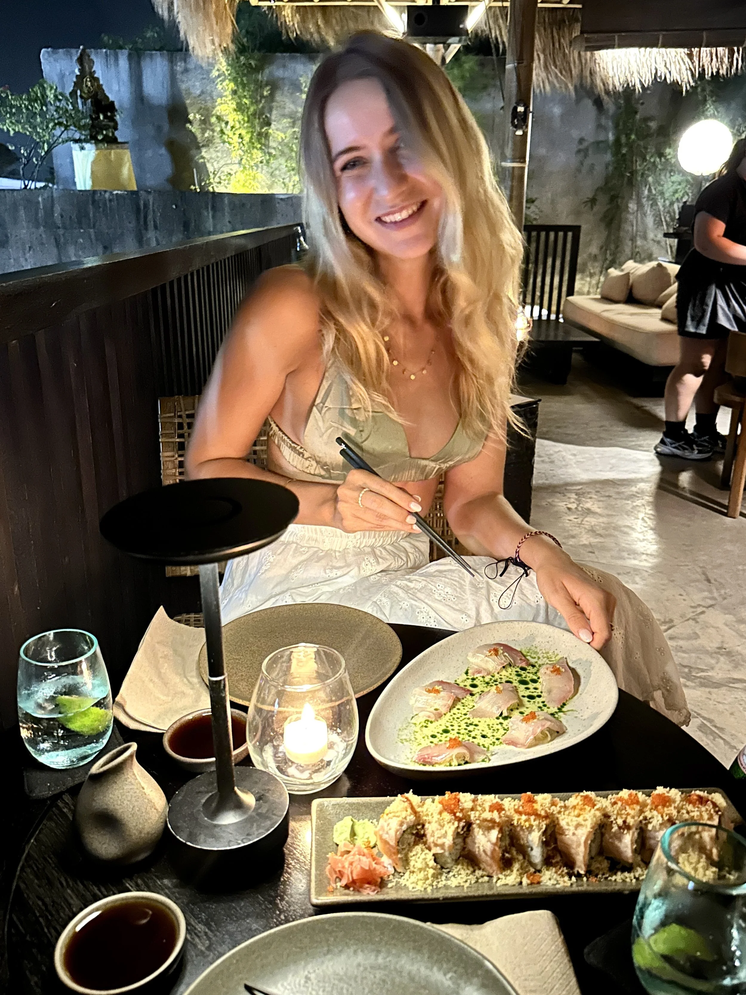 Of course I can highly recommend my favorite Japanese hotspot from Canggu in Uluwatu as well. The menu is the same, the vibe is a bit different as you’re sitting on a higher level than the street and you can also get a table for two (unlike in Canggu where it’s mostly sharing tables). My favorite plates are the island sashimi & torched salmon roll.