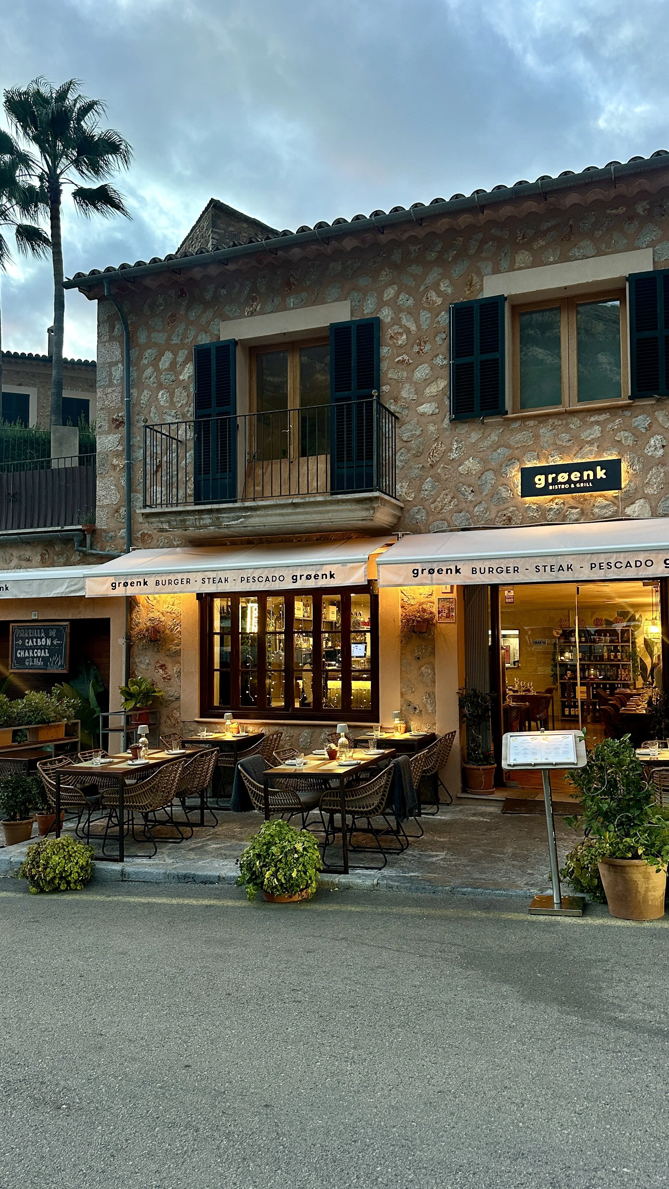 Nestled in the Tramuntana mountains in the beautiful village of Fornalutx, Groenk is a true paradise for grill lovers. Incredible burgers, the best steaks of the island, fresh seafood - all prepared on a charcoal grill combined with their tasty desserts and a perfect tinto de verano in a lovely, relaxed setting. They also have a second restaurant in Deià, which is definitely next on my list. Highly recommend Groenk!