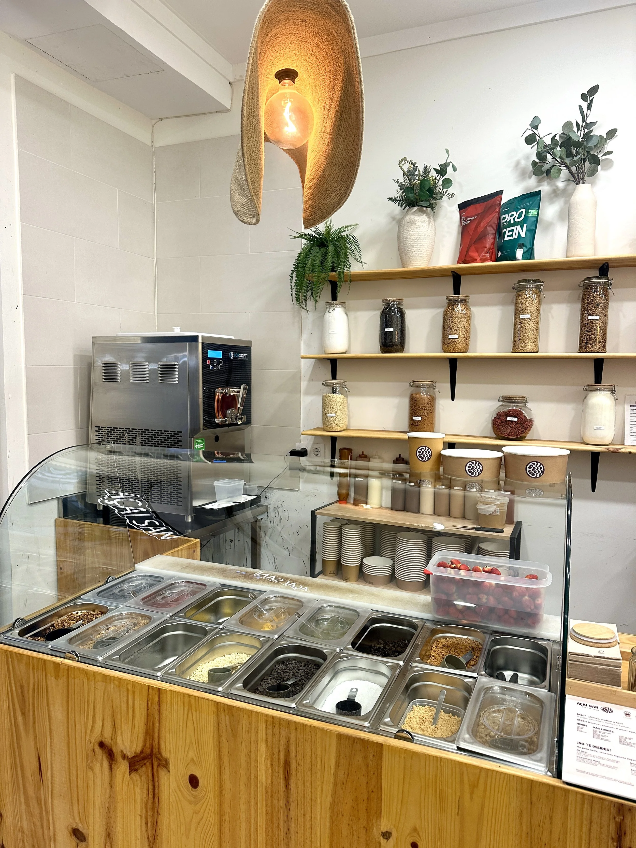 Açai San Mallorca: if you’re craving authentic and delicious acai then this is your go to spot! You can choose various sizes from many different toppings such as fresh fruits, nuts, whey protein, cookies, coconut seeds and add your favorite sauce such as peanut butter or even nutella on top. If you can’t choose there there are also several tasty acai on the menu to make it easier for you.